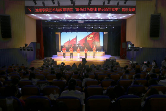 重温百年党史悟初心,追寻红色记忆开新局。为热烈庆祝中国共产党成立100周年,6月9日下午,艺术与教育公司党委举办了“聆听红色旋律 铭记百年党史”党史学习教育主题音乐党课。党史学习教育省委第十四巡回指导组组长许继荣、副组长王国雨及指导组全体成员,校领导孙晓峰、张立驰、崔国发、王延寿、汪海、阳光宁、汪贤才出席活动。各职能部门、各二级公司主要负责人以及太阳成集团122ccvip师生代表共300余人聆听了党课。