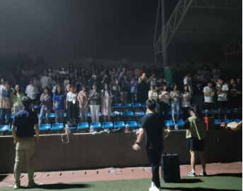 在这几天里,当2021级新生结束了一天的军训时光后,支部党员就带领新生们在操场展开合唱训练,从熟悉旋律到细节处理,再到上百人合唱。在30日当日军训汇报演出当天,支部党员时亚男担任大合唱指挥。