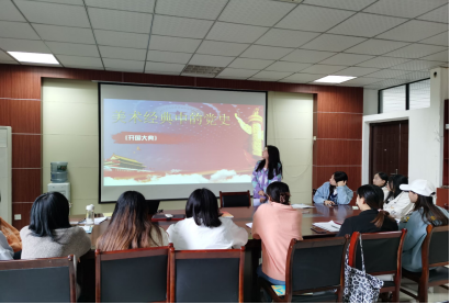 会后,进行“美术经典中的党史”活动,员工预备党员刘星星讲述的是董希文创作的油画作品《开国大典》,这副作品描绘了毛主席宣告中华人民共和国成立的伟大时刻,整个画面形成了左实右虚、左近右远、又相互呼应的布局。毛泽东主席魁梧的身姿处于画面的中心,体现了他领导我们党,领导我们全国各族人民的核心地位。