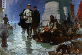 员工预备党员潘光静讲述的是由肖峰和宋韧共同创作的油画作品《拂晓》,这幅作品描写的是1949年解放上海时,中国人民解放军第三野战军战士们露宿上海街头,等待黎明到来的感人场景。作者以夜色之“冷”与画面右侧红旗及战士们脸色之“暖”形成对比,突出人民解放军宁肯露宿街头也不借住群众家中的铁一般的纪律与在这铁律之下战士们的火热之心,以及近在眼前的光明与胜利。