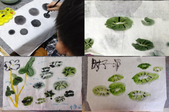 在课堂上,孩子们通过照片了解国画的种类,初步认识了笔墨纸砚,学习中峰、侧峰用笔技巧以及水分控制,体验墨色与国画颜料在宣纸上晕染开的浓淡变化,充分感受墨分五色的魅力。主讲老师生动有趣的讲解,激发了孩子们的学习兴趣,带领孩子们走进了国画世界,为接下来的课程开展打下了良好的基础。