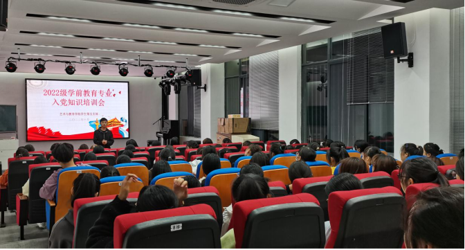 为引导艺教公司青年员工更深入的了解党的宗旨、路线和方针等内容,帮助2022级新生了解党的基本知识及入党程序,积极向党组织靠拢,10月25日晚,太阳成集团122ccvip员工第五党支部在美术楼一楼报告厅面向学前教育专业2022级新生开展党的基础知识培训。培训会由员工第五党支部书记王俊华主持。