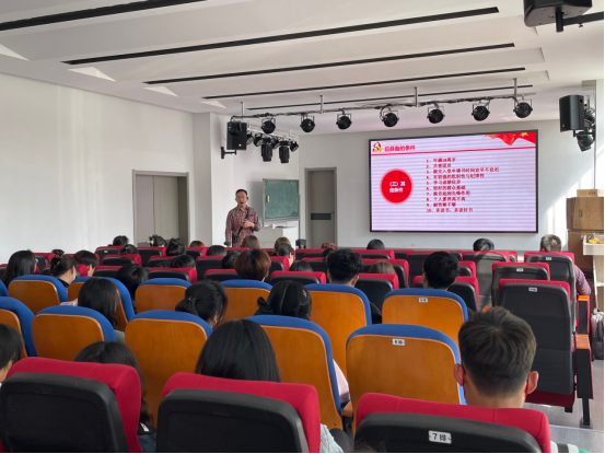 李俊明重点讲解了入党应具备的条件和中国共产党党员发展工作流程。同学们通过学习,明白了入党应具备的条件,了解了党员的发展工作流程,明确了努力方向,活动达到了预期效果。
