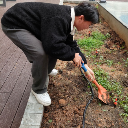 花圃中杂草与种植花草间隔生长,影响美观。因此支部党员们来到花圃边上,进行分区清理,修剪扶正部分花苗。同时清理花草间的白色垃圾以及枯枝落叶。