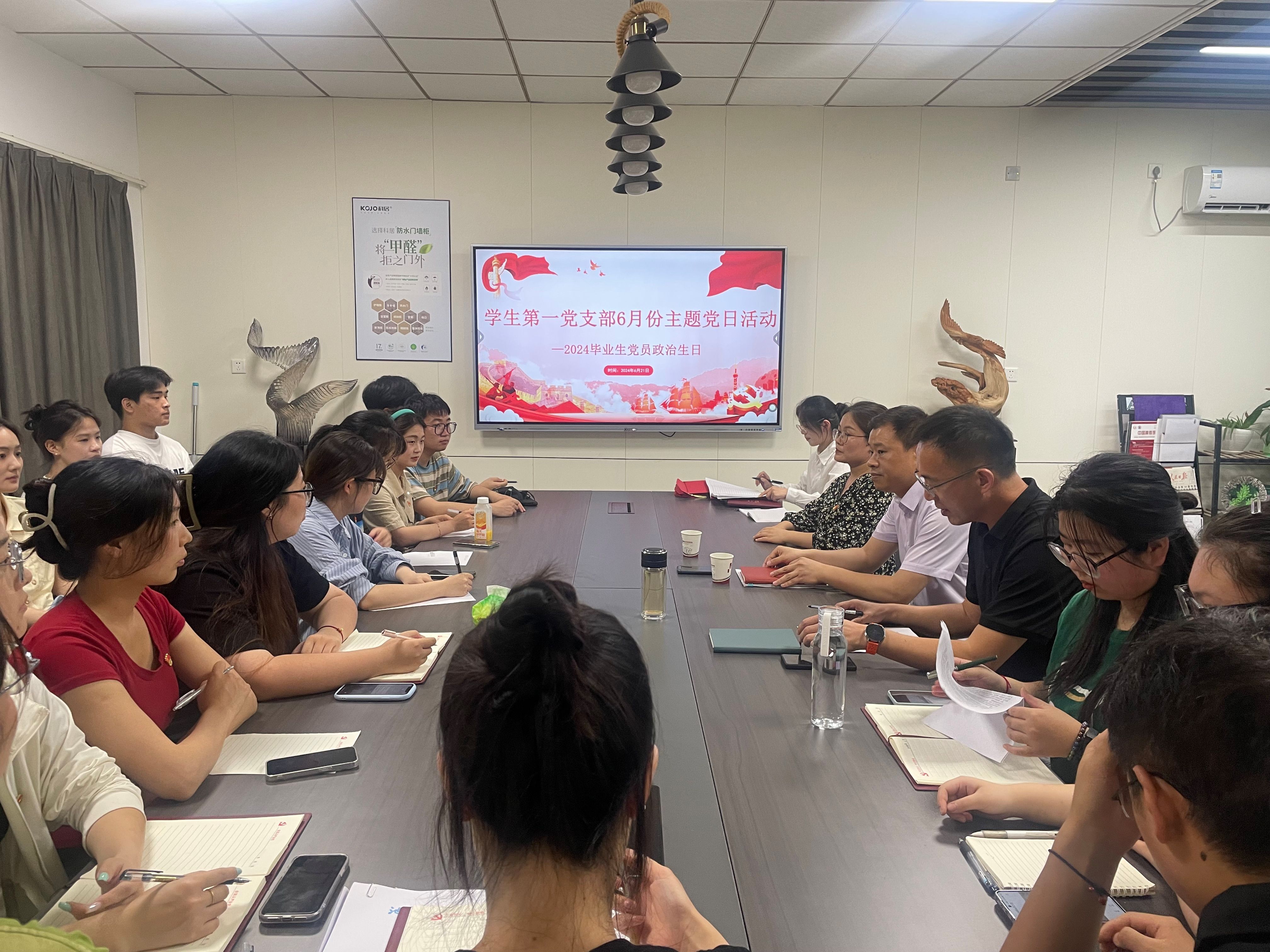 党支部为每位毕业生党员精心准备了政治生日贺卡,贺卡上印有他们的姓名、入党时间及入党誓词,还有党组织对他们一直以来的关心和关怀。会上支部还为毕业生党员赠送了纪念品,鼓励他们继续发扬党的优良传统和作风,在新的人生征途上不断前进。在交流环节,毕业生党员们纷纷发言,分享了自己在校期间的学习、工作和生活经历,表达了对母校的眷恋和对未来的憧憬。他们表示,将始终牢记党的教导和嘱托,不忘初心、牢记使命,以实际行动践行共产党员的责任和担当。