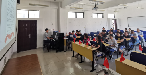 通过刘自圣老师从专业角度的讲解和示范,大家对爱国歌曲《我和我的祖国》的创作背景、歌曲特点、演唱特色等有了进一步地了解,对于大家唱准、唱好爱国歌曲很有启发。最后在王韵老师指挥、刘自圣老师钢琴伴奏下,全体党员热情洋溢的高唱了《我和我的祖国》,将活动推向高唱。