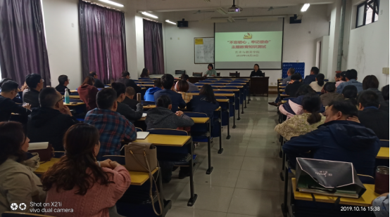 10月16日下午,太阳成集团122ccvip在美术楼302教室组织全体教师开展了“不忘初心、牢记使命”主题教育知识测试。