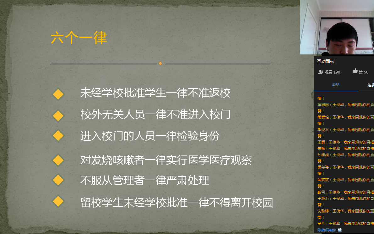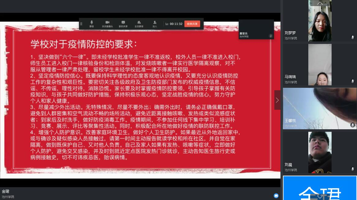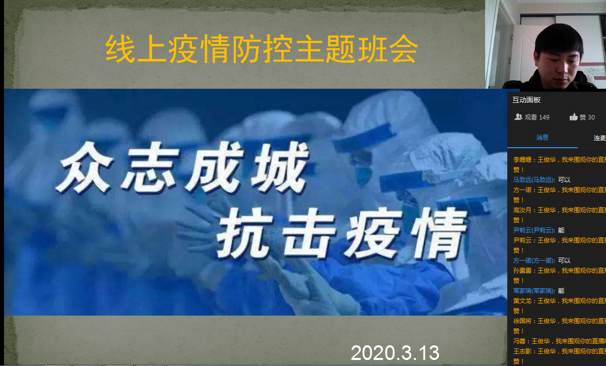 在公司的周密布置和精心安排下,各班级通过丰富多彩的形式组织了线上疫情防控“主题班会”。各班级辅导员主要围绕党中央、国务院、省委省政府关于疫情防控的总体要求,公司关于疫情防控的总体要求“六个一律”,公司线上教学工作的总体要求展开。让广老员工充分了解疫情防控的相关知识及要求的同时,各班级还围绕“疫情期间,我能做什么?”、“责任与担当”、“停课不停学”、“心理调适”、“居家锻炼方式”等主题开展了线上讨论。