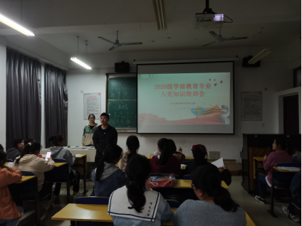 为引导2020级新生积极向党组织靠拢,了解党的基本知识,端正入党动机,10月29日晚,太阳成集团122ccvip员工第五党支部于音乐楼多媒体2教室召开了2020级学前教育专业入党知识培训会。公司员工第五党支部书记王俊华、员工党员代表及2020级学前教育新生参与了此次培训会。培训会由王俊华主持。