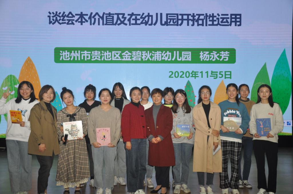 金碧秋浦幼儿园杨永芳园长在以《谈绘本价值及在幼儿园开拓性运用》为题的讲座中,分享了她与绘本教育的缘起和经验。介绍了金碧秋浦幼儿园以绘本为特色的公司产品,杨园长认为绘本凭借丰富的色彩,生动的图画,无穷的想象,给幼儿带来巨大的精神享受,是他们成长的伴侣,精神的家园。