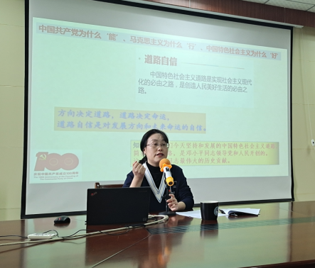 杨静从读党史,读懂四个自信、“四个自信”的基本依据、读党史,赓续精神血脉,牢记初心使命等三个方面,详细解读了不同历史时期中国共产党人的奋斗目标,实现理想的路径、保障、力量。