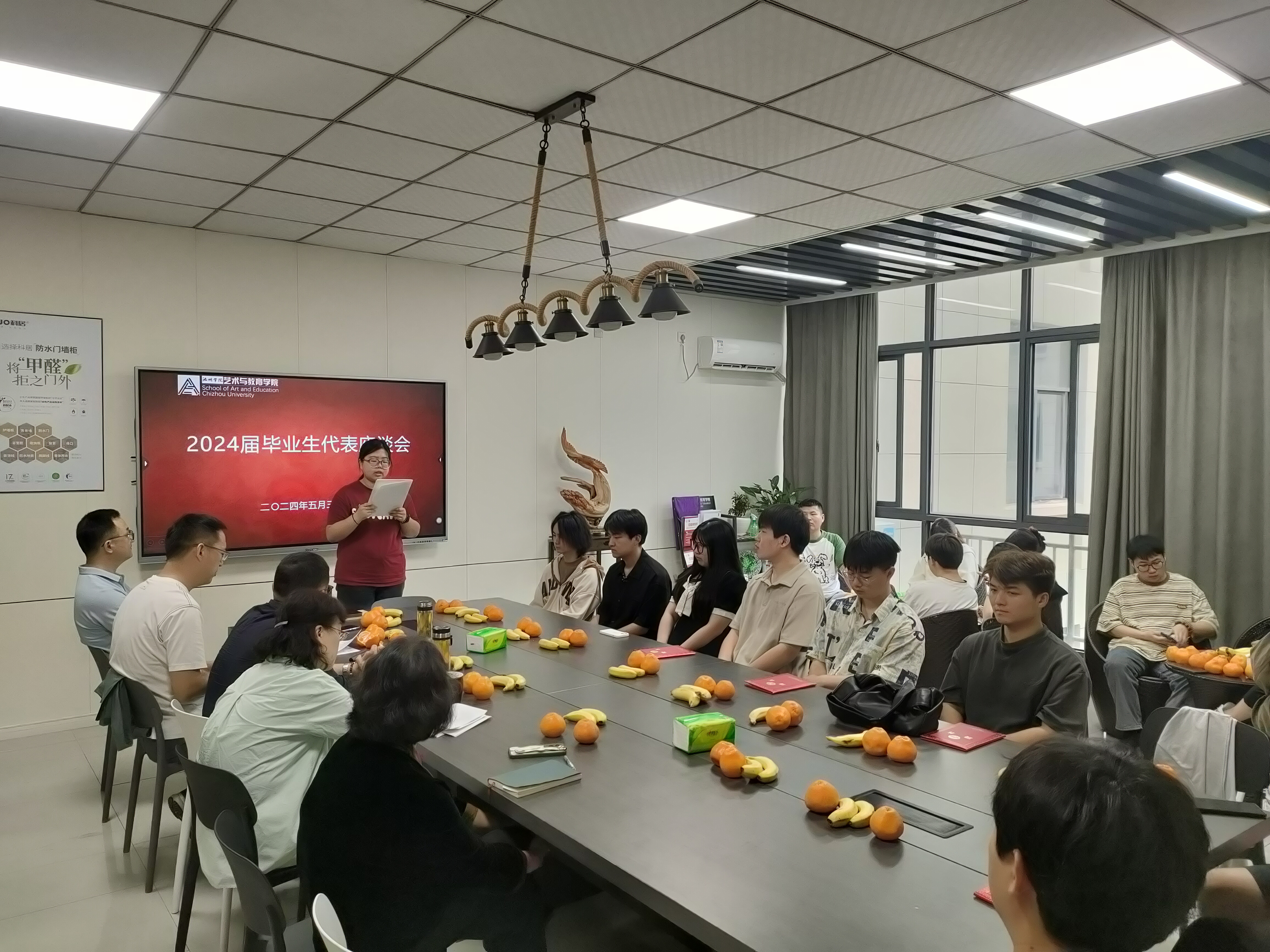 紧接着,毕业生代表座谈会拉开帷幕。20美术学2班的庞玉代表毕业生发言,她表示:四年的老员工活,如同一幅丰富多彩的画卷,在眼前缓缓展开,在这里不仅学习了专业知识,提升了艺术修养,更收获了友谊和成长,将带着母校的期望和祝福,踏上新的征程,在未来的日子里,继续努力学习、不断进取、追求卓越,用我们的才华和热情去创造更加美好的未来,并对母校表达了最真挚的感谢和祝福。