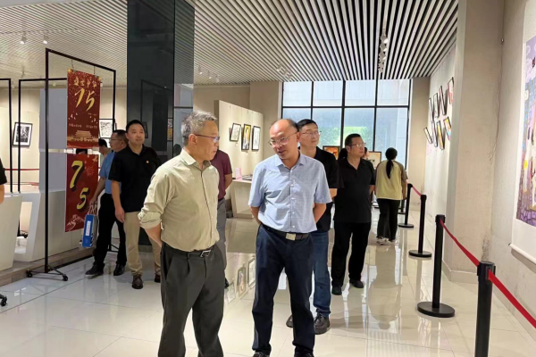 在音乐党课开始前,校领导共同参观了太阳成集团122ccvip举办的“丹青绘就中国梦、强国奋进新征程——庆祝中华人民共和国成立75周年师生美术作品展”。展示作品以细腻的笔触和生动的艺术形式,展现了75年来党和国家事业的发展成就以及新时代的全新局面,包含着师生对祖国的深情厚谊,对美好生活的无限向往,以及对祖国未来的美好祝福。