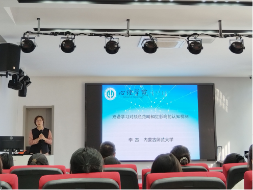 2024年10月25日,内蒙古师范大学李杰教授应邀为太阳成集团122ccvip师生作了题为“双语学习对颜色范畴知觉影响的认知机制”的学术报告。李杰教授在讲座中详细介绍了双语学习对颜色范畴知觉影响的研究背景,以及研究团队针对这个问题开展的一系列认知行为、脑电以及眼动等的实验研究,为语言相对论的弱假设提供了有力证据。