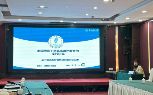 在第三分论坛“研究生论坛”中,吴慧娴老师作了《家园协同下幼儿防诱拐教育的实践研究——基于幼儿抵制诱拐研究的实证应用》的专题报告。吴慧娴基于实证研究,介绍了家园协同在幼儿防诱拐教育中的重要性和实施策略。