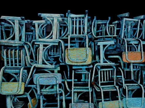 作品《禅影》表现了校园中一个宁静的午后,一堆叠放在一起的椅子所呈现出的光影效果,利用秩序感,展现校园生活中的安静与和谐及对其思忆之情。