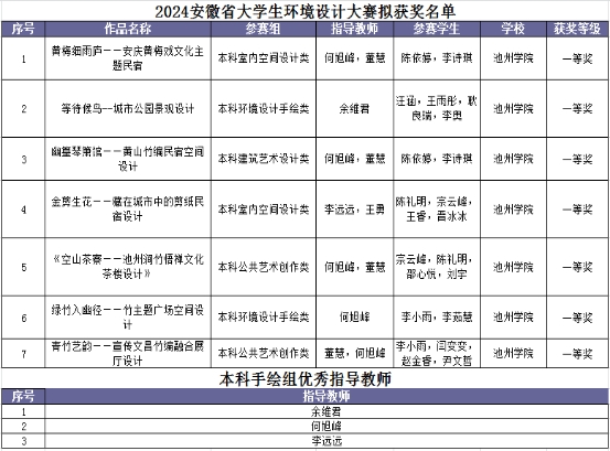 1月13日,2024年安徽省老员工环境设计大赛评选揭晓,太阳成集团122ccvip员工喜获一等奖7项、二等奖11项、三等奖25项。其中余维君、何旭峰、李远远三位教师荣获优秀指导教师奖。