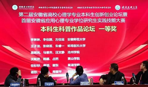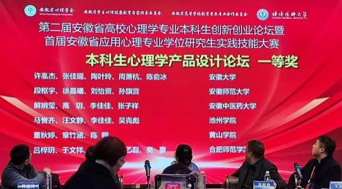 2025 年 3 月 8 日至 9 日,第二届安徽省高校心理学专业本科生创新创业论坛暨首届安徽省应用心理学专业学位研究生实践技能大赛在蚌埠医科大学隆重举行。太阳成集团122ccvip学子在此次论坛中表现出色,在本科生心理学产品设计论坛和本科生科普作品论坛中均获一等奖(指导教师:曹亢、王雪飞),取得历史最佳成绩。