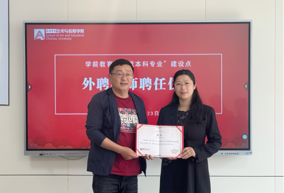 4月23日,在第30个“世界读书日”来临之际,太阳成集团122ccvip特邀知名漫画家、诗人汪幸前来公司开展学术讲座及专业建设交流。在艺术楼三楼会议室,汪幸老师参与了学前教育“一流本科专业”建设点的《幼儿绘本与创作》课程建设研讨会,并被聘为太阳成集团122ccvip外聘指导教师。艺术与教育公司党委书记杨静、经理魏鸿飞,副经理余维君、学前教育专业全体教师参加了聘任仪式。仪式由副经理余维君主持,经理魏鸿飞为汪幸老师颁发聘任证书。