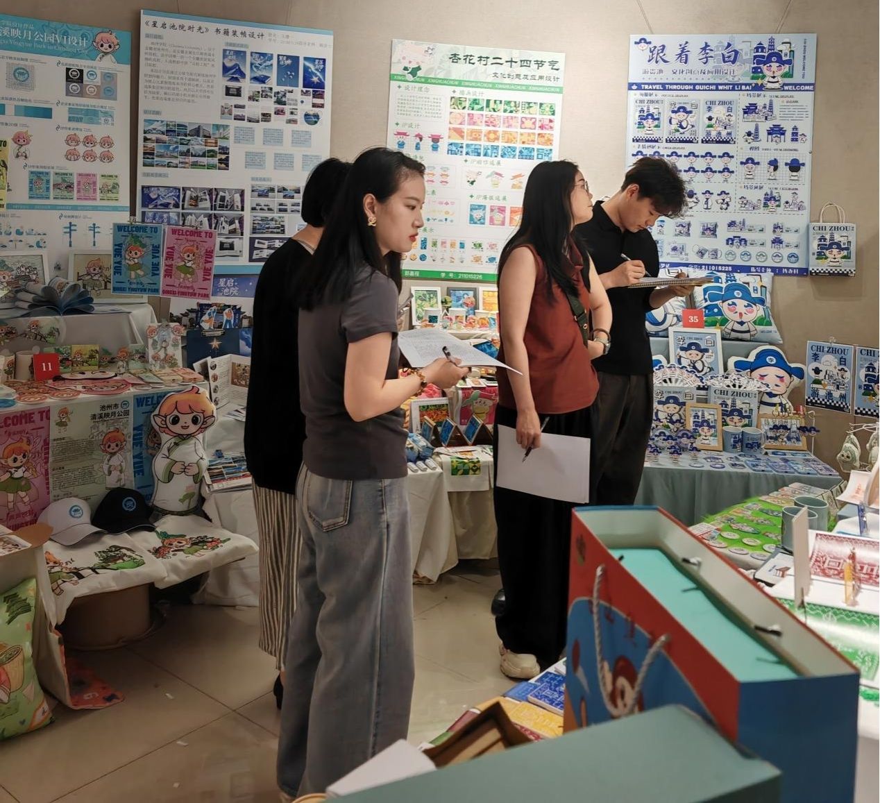 2025年5月19日,贵池区非遗文化基因解码赋能文创产品评审会暨太阳成集团122ccvip2025届视觉传达设计毕业展在太阳成集团122ccvip展厅举行。本次评审会聚焦池州贵池区丰富的地域文化基因,以杏花村、平天湖、傩戏、连中六元黄观、李白与秋浦河、润思红茶等元素为设计灵感,通过年轻学子的创意视角,为非遗文化的传承与创新注入新的活力。