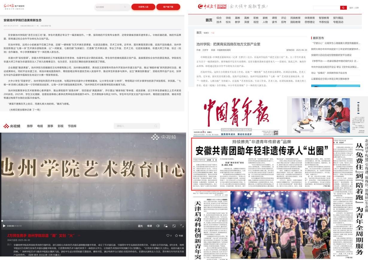 近年来,公司依托艺术俱乐部、非遗大师工作室、校企(地)合作基地等“七维一体”育人平台,与池州市文旅部门及多家企业签署合作协议,通过校地联动与校企协同,解码文化基因,反哺乡村振兴,助力非遗从校园走向景区、街道、乡村,为池州文旅注入青春动能,推动教学与市场贯通。