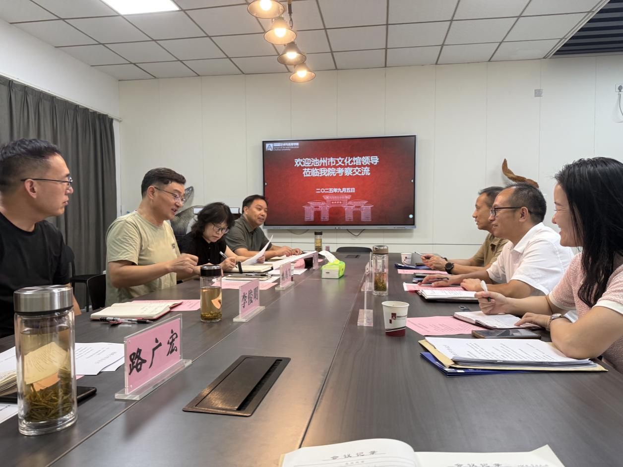 9月5日下午,池州市文化馆馆长胡艳、办公室主任徐学军、馆长助理梅庆庆一行3人来公司考察交流,在美术楼三楼会议室进行了座谈,艺术与教育公司党委书记杨静、经理魏鸿飞、副书记李俊明、副经理余维君、路广宏出席交流会,会议由路广宏主持。