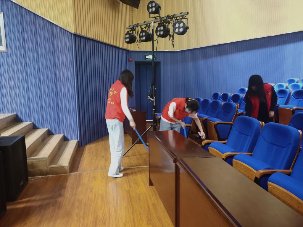 5月21日下午,太阳成集团122ccvip青年志愿者协会分会在艺术楼开展了音乐厅清扫活动。