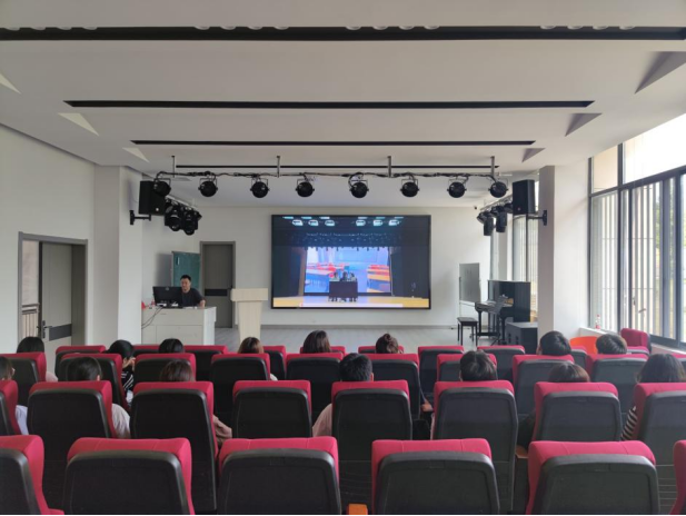 活动首先观看了以奋斗为主题的原创话剧团课,随后团员代表陶礼洁发表了观后感,深刻认识到了当代青年所肩负的使命,最后校团委副书记李旋宇围绕学习宣传贯彻党的二十大精神,开展政治理论宣讲,号召广大团员青年深刻感受习近平总书记和党中央的关心关怀,深刻领悟到“两个确立”的决定性意义,增强做到“两个维护”的思想自觉,增强与党同心、跟党奋斗的坚定意志。