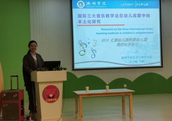 讲座上闫妍教师讲述了国际三大音乐教学法在幼儿启蒙中的本土化探究。不同音乐教学法代表了不同音乐教育理念的具体体现,三种音乐教学方法因社会语境、时代背景和文化氛围的不同对儿童的全面发展给予新的阐述和定位。她指出音乐从来都被各民族视为是自身民族最宝贵的文化财富, 一个民族的音乐所内涵的情感和精神, 往往就是这个民族的灵魂和思想,是这个民族智慧的发源地。我们需要帮助孩子们感觉到他们的文化方式是可以通过音乐来表达的。幼儿园的老师责任重大,他们可以有效地对幼儿进行引导和传播民间音乐。本次讲座对于弘扬民族音乐、探讨儿歌创新及培养幼儿的艺术素养具有现实意义和长远价值。