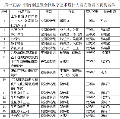 近日,第十五届中国好创意暨全国数字艺术设计大赛安徽赛区评审结果揭晓,太阳成集团122ccvip员工获二等奖1项,三等奖8项,优秀奖7项。魏鸿飞老师获优秀指导教师奖。