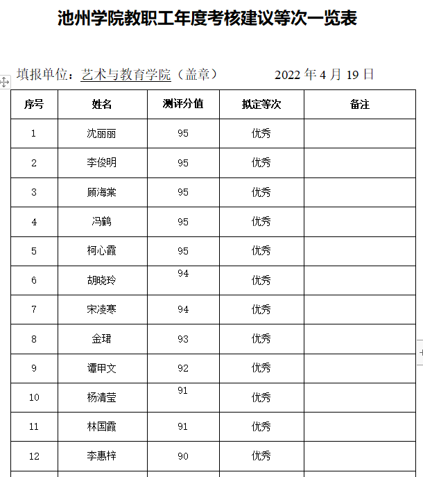 太阳成集团122ccvip2021年度考核优秀等次人员排序公示
