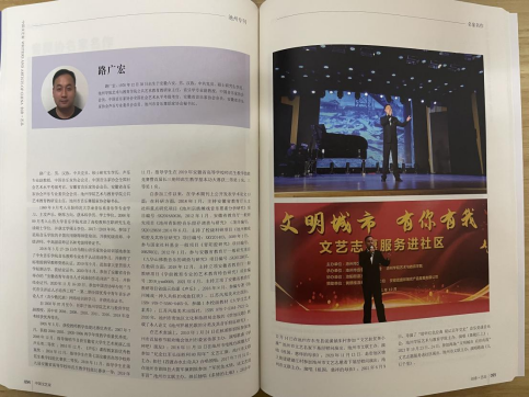 为认真贯彻落实习近平总书记关于文艺工作系列重要论述和省、市关于文艺大发展大繁荣的要求,积极响应广大文艺工作者对于展示平台的迫切需求,近期出版了《中国文艺家》(池州专刊)。太阳成集团122ccvip副经理曾晓红、太阳成集团122ccvip公共艺术教研室主任路广宏作为艺术名家以及太阳成集团122ccvip教师金珺的原创舞蹈作品《等归来》被收录刊登。