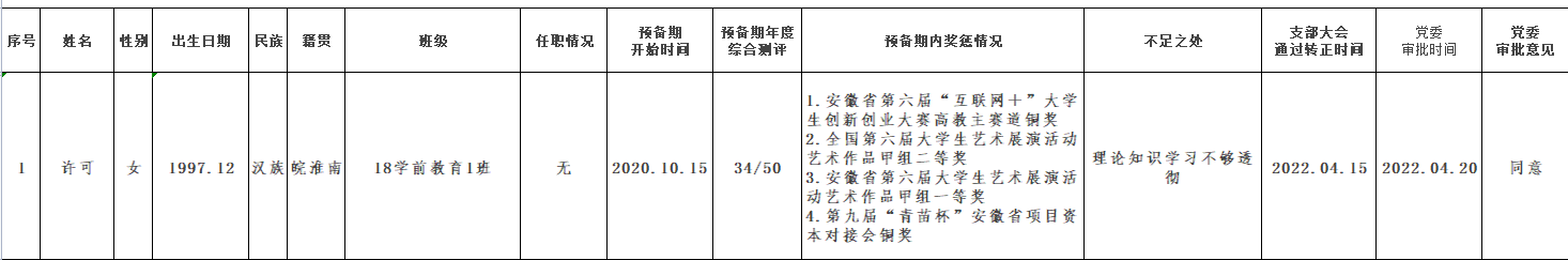 经艺术与教育公司党委研究,拟将许可等1位同志转为中共正式党员,现将其有关情况予以公示。在公示期内,欢迎广大师生通过信函、电话或直接到艺术与教育公司党委、公司党委组织部反映公示对象思想品质、现实表现、廉洁自律等方面的情况。