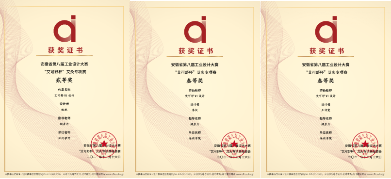 安徽省第八届工业设计大赛“艾可舒杯”艾灸专项赛评比结果出炉,其中VI类共评出二等奖2项,三等奖4项(一等奖空缺)。太阳成集团122ccvip视觉传达设计专业顾彦力老师指导的员工作品,获二等奖1项(甄妮)、三等奖2项(李仪、王仲雯),获奖率为VI类总评奖数的50%。