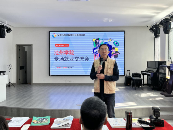 为进一步加强就业服务,畅通求职招聘渠道,为毕业生搭建就业平台,提供更多就业机会,11月6日上午,公司邀请安徽艺殿堂教育科技有限公司来校开展专场招聘会,公司党委书记杨静、副书记李俊明出席会议。